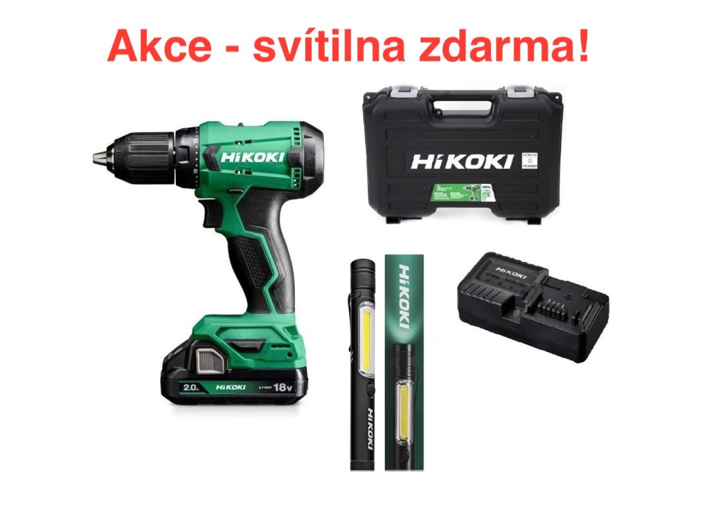 HiKOKI (Hitachi) DS18DA Aku šroubovák 18V (1x2 Ah, nabíječka, svítilna, kufr)